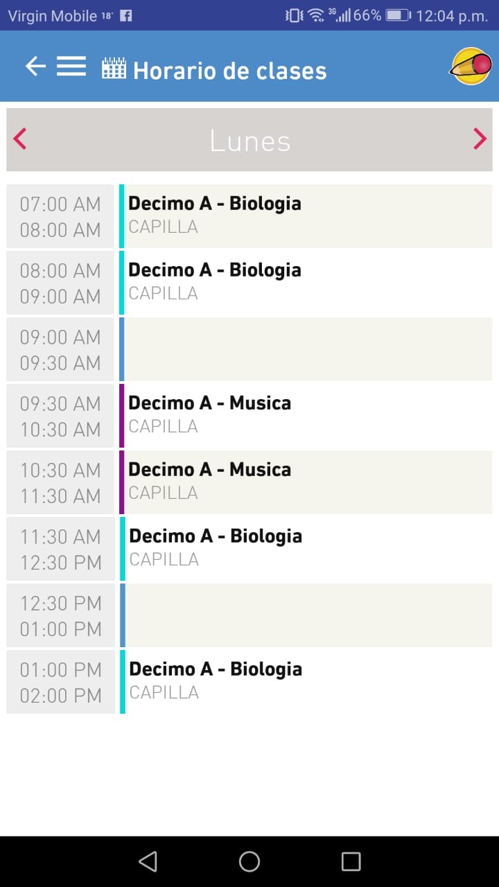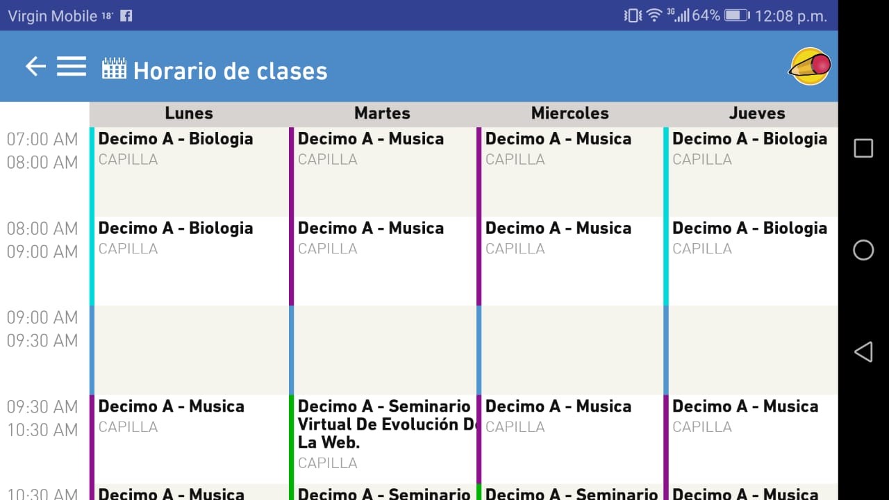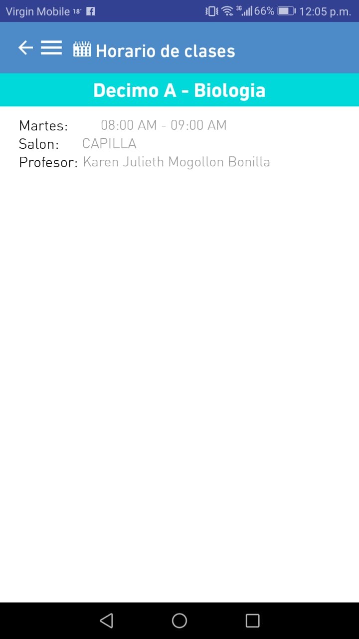 En este módulo el usuario podrá ver el horario de clases publicado por el Administrador del Sistema. El usuario tiene la posibilidad de ver los detalles de cada clase.
